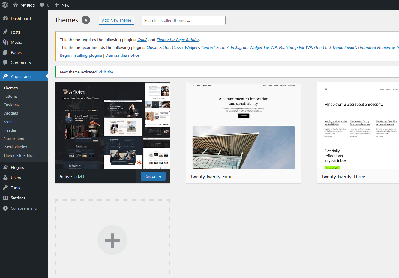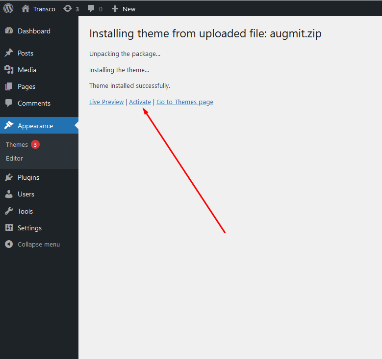 Once uploaded, activate the theme by heading to the “Themes” menu in the WordPress Dashboard. Locate the Technova theme and hit “Activate”.